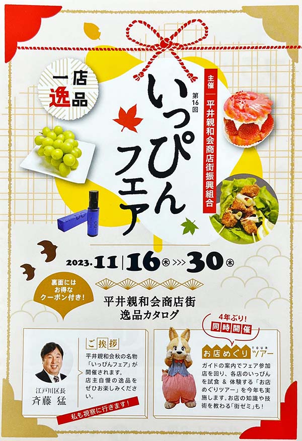 即日起至12月18日,平井新和會商店街將舉辦「年末大促銷」。凡消費滿1000日元,即可獲贈一張總獎金高達160萬日元的三角彩票,最高獎金可達1萬日元。另外,還有更多優惠活動!歡迎蒞臨平井站南口的商店街。